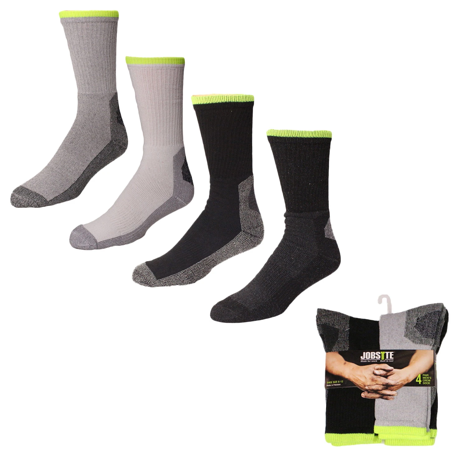 Jobsite Men’s Working Tough Cushioned Crew Boot Socks – 4-Pack